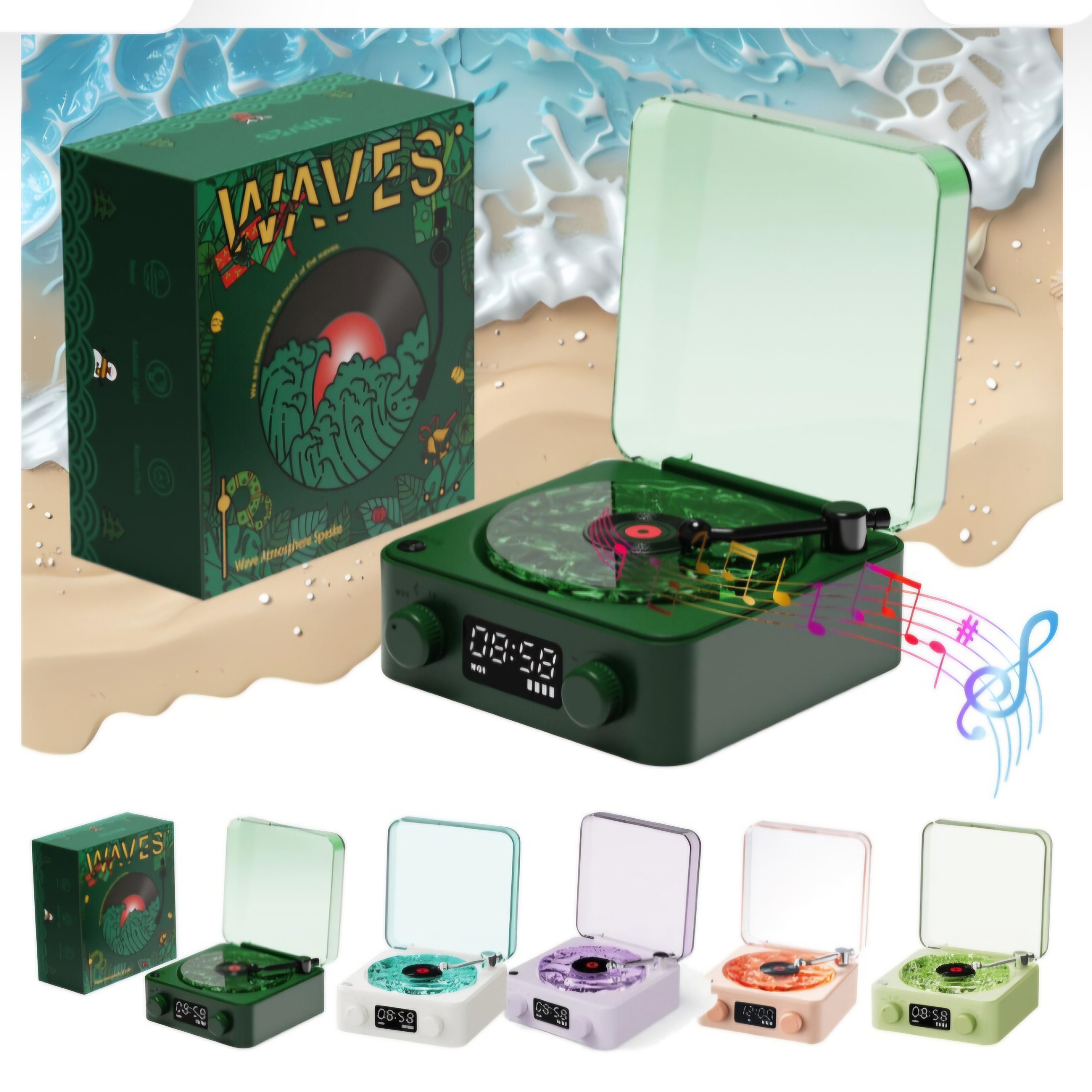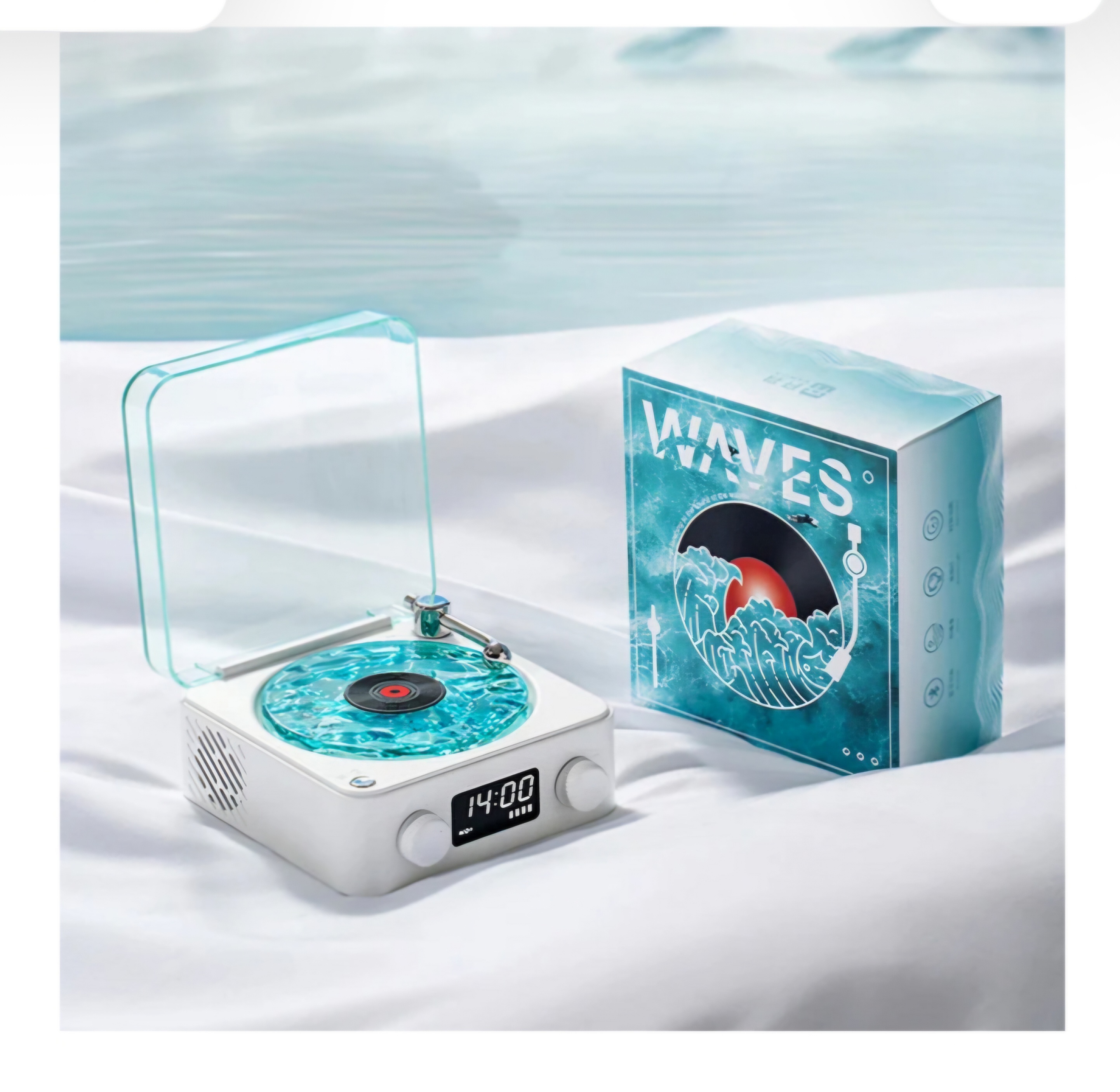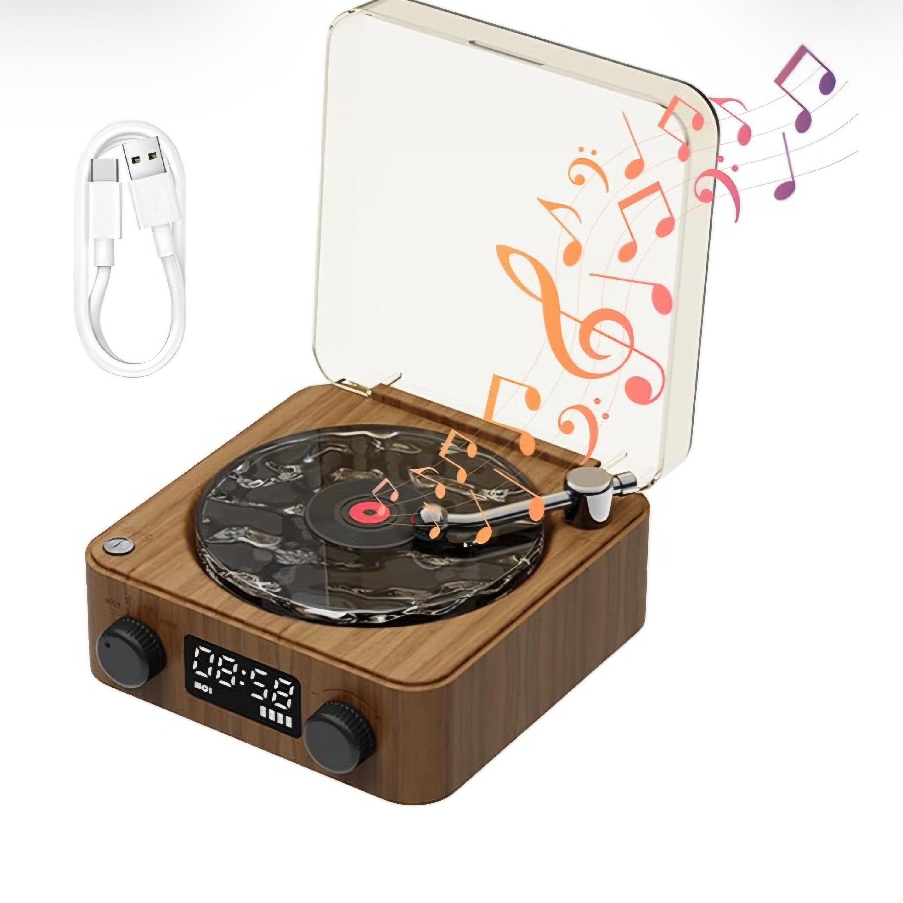 کیفیت فوق العاده. شارژی با کابل تایپ سی. قابلیت پخش موزیک از طریق بلوتوث AUX و مموری ، میکرو. دارای ساعت رومیزی. دارای نور پردازی در ۳ حالت مختلف رنگی + مود نور خاموش. دارای قابلیت چرخش دیسک رویی. اسپیکر بلوتوثی با کیفیت چراغ خواب شبیه ساز امواج دریا